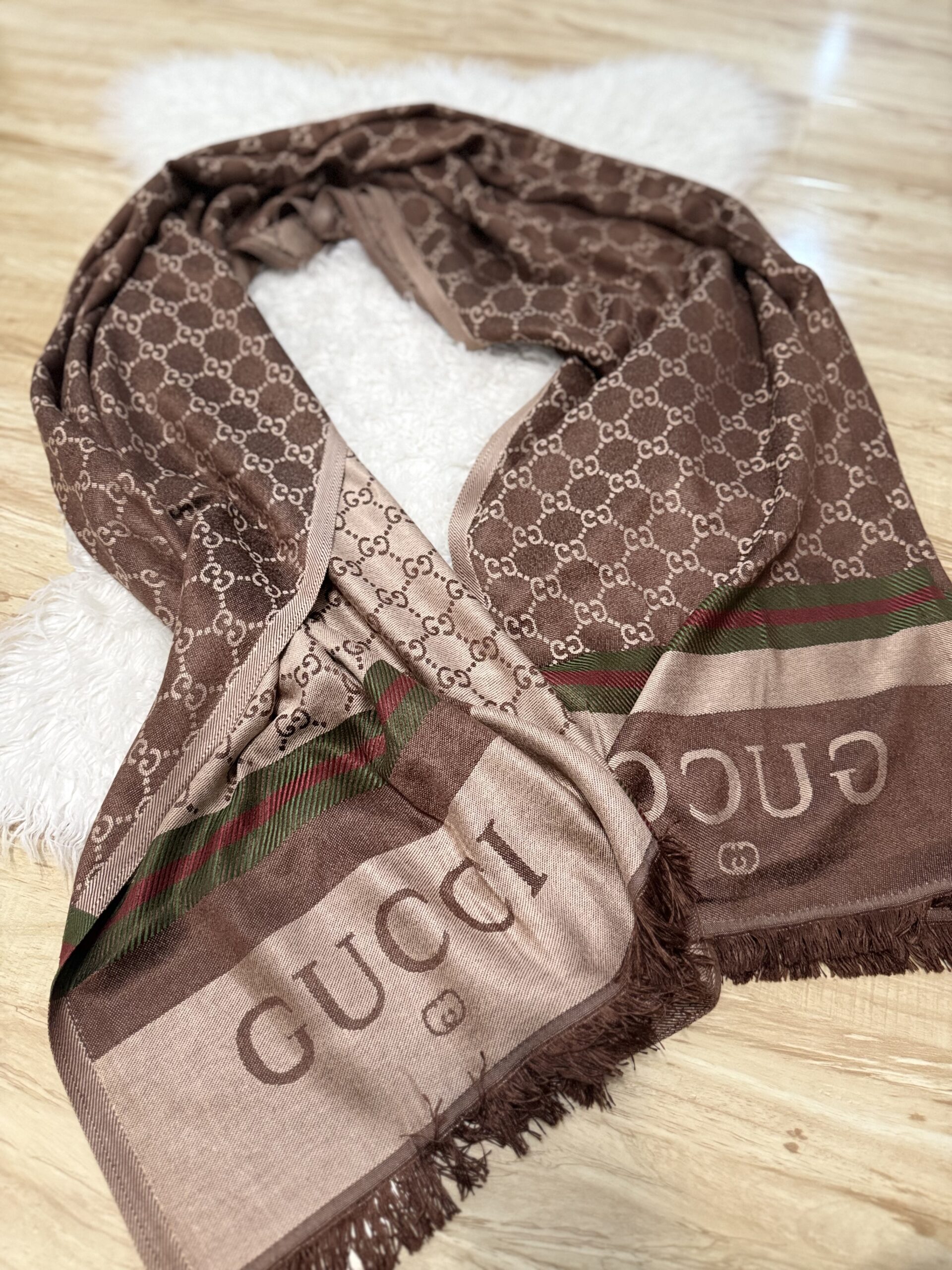 Ova prelijepa marama u toplim smeđim tonovima sa modernim uzorkom i ukrasnim resama je pun pogodak! 🎯