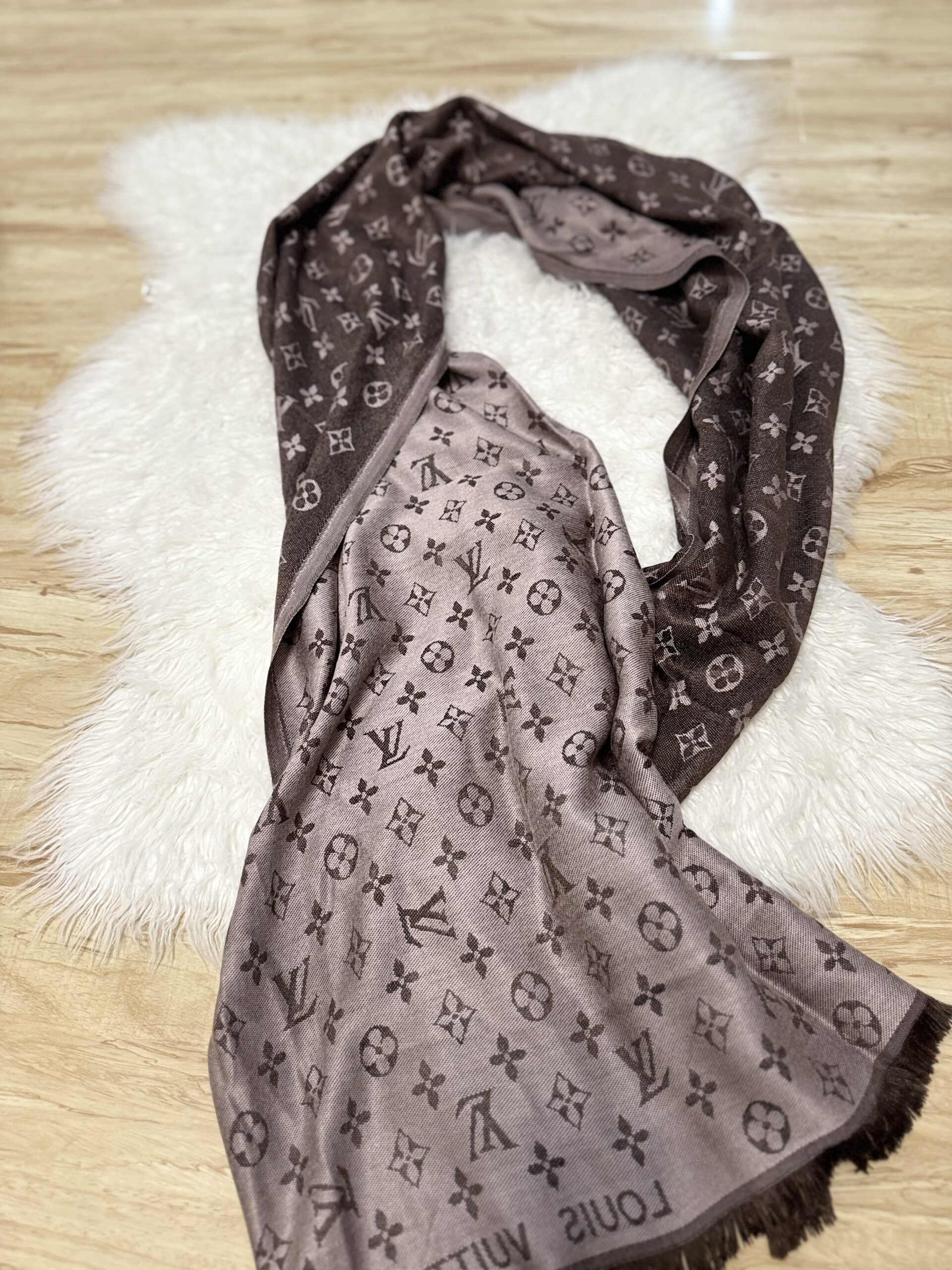Ova prelijepa marama u toplim smeđim tonovima sa modernim uzorkom i ukrasnim resama je pun pogodak! 🎯