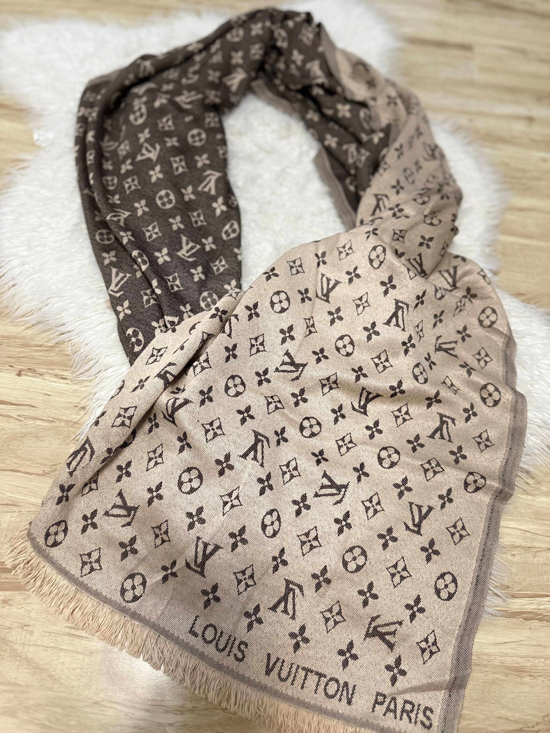 Ova prelijepa marama u toplim smeđim tonovima sa modernim uzorkom i ukrasnim resama je pun pogodak! 🎯